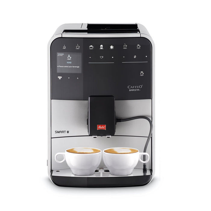 La MELITTA Barista Smart T es una cafetera superautomática diseñada para ofrecer una experiencia personalizada y profesional en la preparación de café espresso en el hogar. Presenta un diseño elegante con acabados en blanco y plateado, que se adaptan fácilmente a cualquier cocina moderna. Su sistema de extracción opera con una presión de 15 bar, garantizando la extracción óptima del café para obtener un sabor intenso y una crema densa y equilibrada. Con una potencia de 1450 W, el aparato alcanza rápidamente la temperatura ideal para la preparación, optimizando el tiempo de funcionamiento. Cuenta con un depósito de agua extraíble de 1,8 litros con sistema de detección automática del nivel para facilitar el rellenado y asegurar un uso cómodo y continuo sin interrupciones frecuentes. La interfaz incorpora una pantalla TFT que permite seleccionar y programar hasta 5 intensidades de café distintas, adaptándose a las preferencias individuales y garantizando una preparación precisa. Además, integra funciones automáticas tanto para la limpieza como para la descalcificación, contribuyendo al mantenimiento sencillo y a la prolongación de la vida útil del equipo. La cafetera mide 259 x 372 x 467 mm, lo que la convierte en un aparato compacto pero robusto para uso diario. Aunque no dispone de un tanque de leche integrado, está diseñada claramente para preparar espressos de alta calidad con rapidez y facilidad, siendo una solución ideal para usuarios que valoran la funcionalidad y un café de calidad sin complicaciones adicionales. En conjunto, la MELITTA Barista Smart T se posiciona como una opción equilibrada y eficiente dentro del segmento de cafeteras superautomáticas, orientada a quienes buscan versatilidad y prestaciones técnicas avanzadas en un formato accesible y estéticamente destacado.
