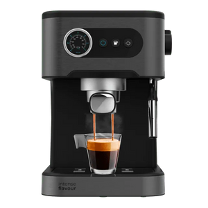 Descubre la cafetera express que prepara 2 cafés a la vez con espuma de lece cremosa y emisión de agua caliente para infusiones. Diseño intuitivo con superficie calientatazas y depósito extraíble de 1.5L.