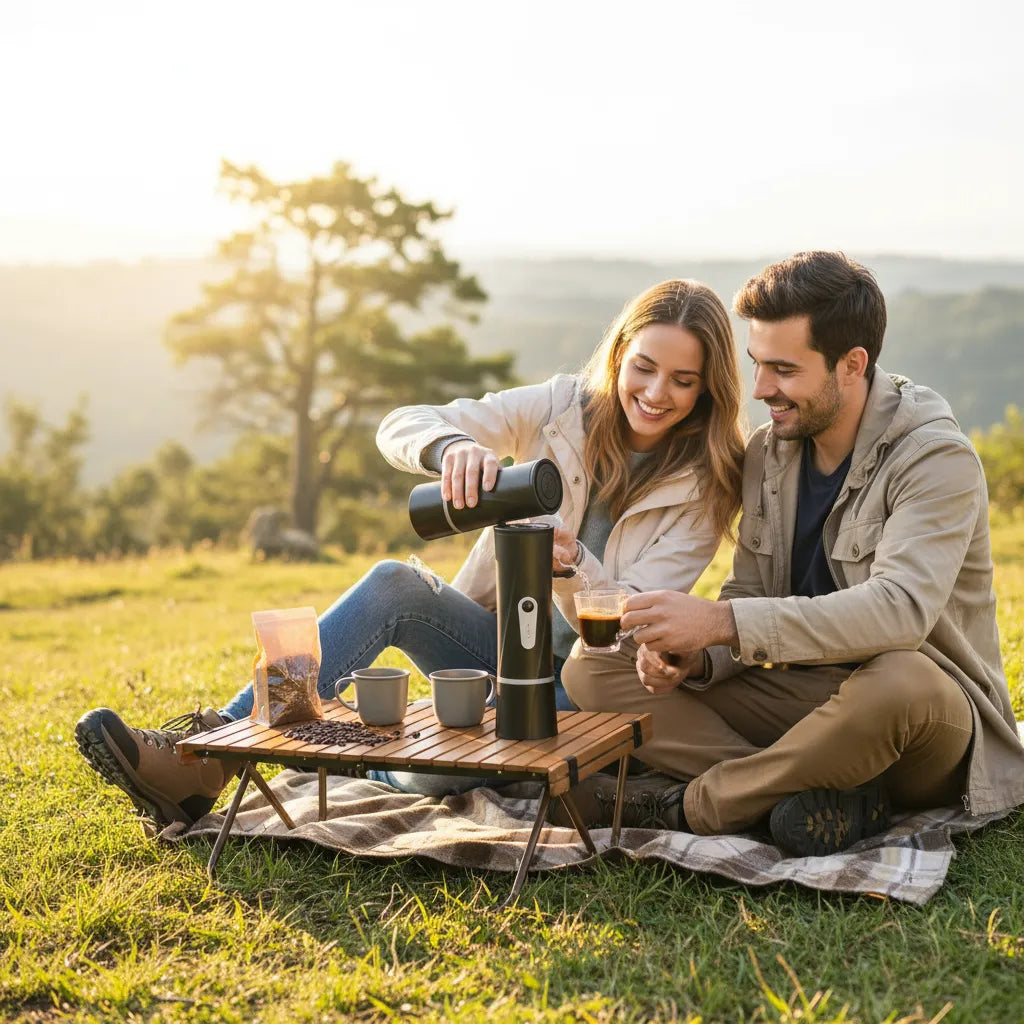 Disfruta del placer de un café de calidad en cualquier lugar con esta cafetera portátil a batería. Con 95W de potencia y 20 BAR de presión, prepara espresso en solo 40 segundos mediante cápsulas tipo Nespresso o café molido (8-10 g).