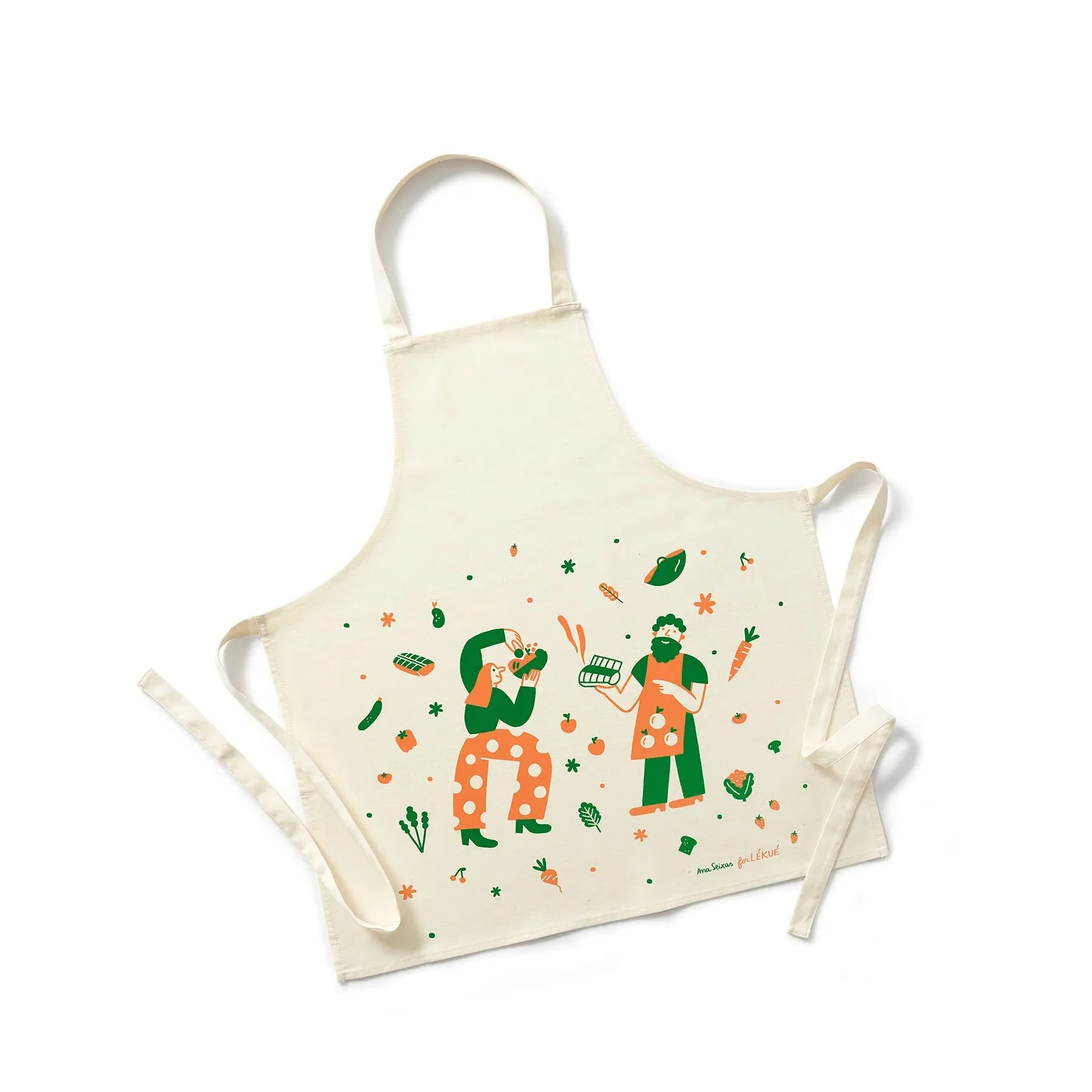Delantal: Delantal entero 100% de algodón. También es perfecto para utilizarlo a media cintura si lo deseamos. Con un diseño exclusivo de Ana Seixas para Lékué.
