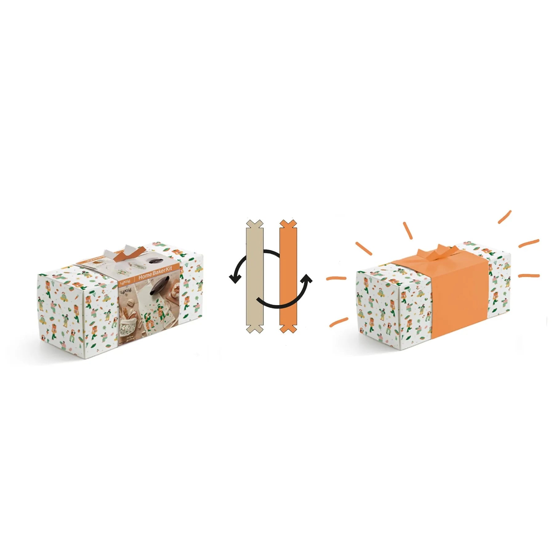 Para poder aprovechar el packaging y utilizarlo como el mismo envoltorio de regalo, utiliza el elemento informativo “faja” y conviértelo en un atractivo lazo que lo envuelve. ¡Solo dale la vuelta! No malgastes papel de envolver de un solo uso, aprovecha el packaging del Kit para regalarlo directamente.
