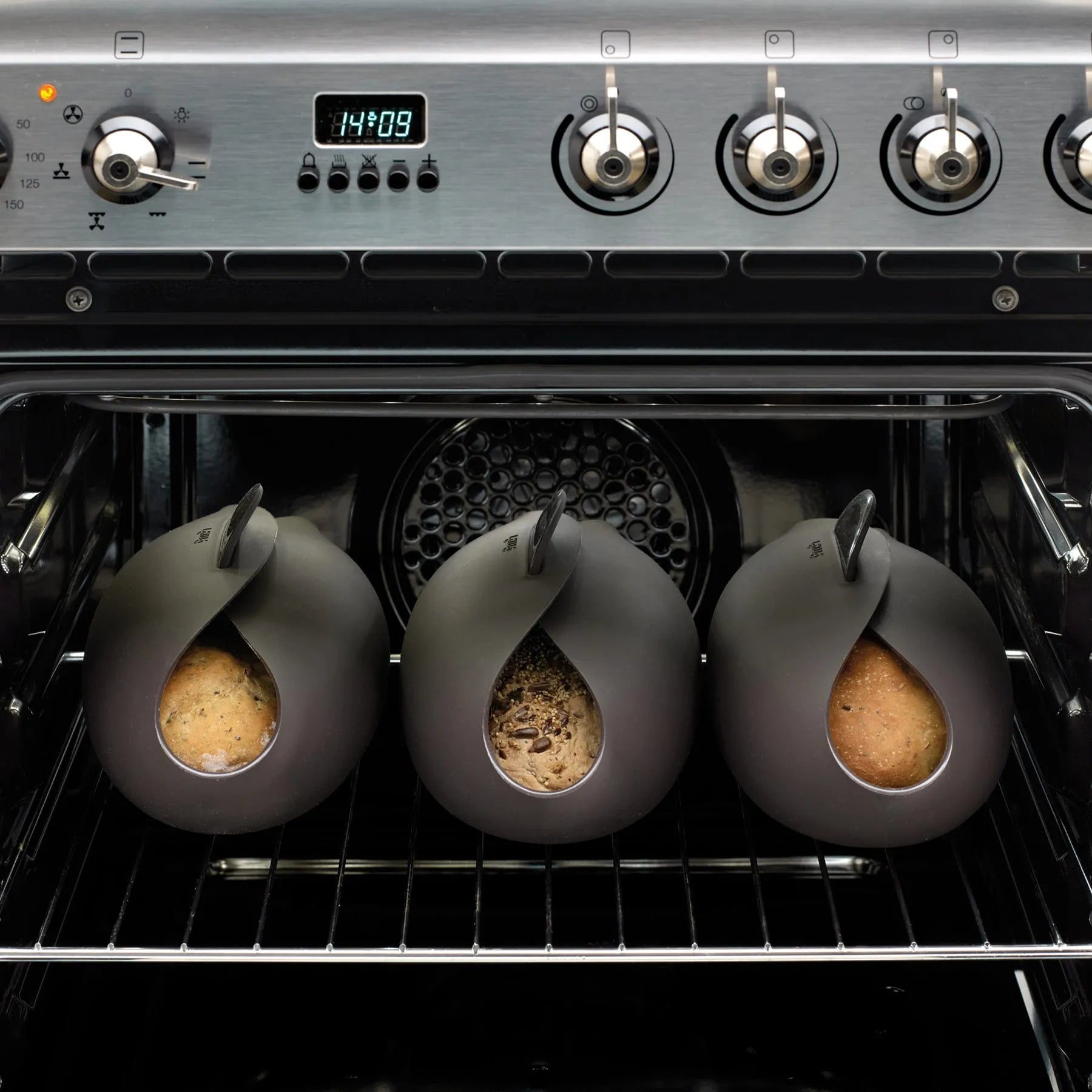 La Panera es un recipiente multiuso, en el que puedes pesar y amasar el pan, dejarlo fermentar y después cerrándolo con su pestaña, hornearlo. Durante la cocción, gracias a su diseño, la panera conserva su humedad, consiguiendo un pan tierno por dentro y crujiente por fuera. Con capacidad para un pan de 500 gr. Incluye un recetario con recetas básicas, integrales o para celíacos entre otras.
