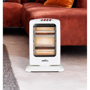 Estufa eléctrica de la serie CANDENTE en color BLANCO. Realizada en metal, policarbonato y cristal. Equipada con 1200 watios máximos de potencia repartidas en sus tres tubos de cristal, para ajustar entre tres potencias de calefacción, 400 watios, 800 watios y 1200 watios, dependiendo del tamaño y temperatura de la estancia a calentar. Tecnología que crea calor al instante, con su función oscilante, podrá redirigir el ángulo de calor a la zona de la habitación que desee calentar con mayor intensidad. Viene con sistema Antivuelco y una rejilla de protección. Ideal para salones, dormitorios, estudios y zonas de trabajo, se presenta con un diseño de fácil manejo y fácil de transportar, gracias a su tamaño y a el asa que contiene en su estructura compacta. Tiene unas dimensiones de 44x33x23 centímetros.