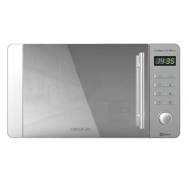¿Cansado de microondas difíciles de limpiar? Descubre el microondas Cecotec ProClean 5020 Mirror con interior Ready2Clean que repele la suciedad. Diseño premium con frontal espejo y tirador de acero inoxidable. Tecnología 3DWave para una cocción uniforme y 8 programas automáticos. ¡Calienta, descongela y cocina con estilo!