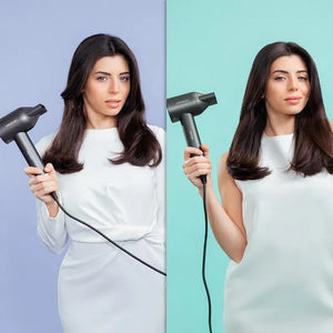 Descubre el secador con generador de nanoiones que sella la hidratación y elimina el 100% de la electricidad estática. Motor brushless de 110.000 rpm para secado express ultra silencioso. ¡ Tecnología inteligente que memoriza tus preferencias!