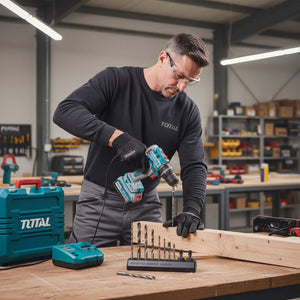 Taladro percutor Brushless 20V con 2 baterías de 4.0AH y acessorios TOTAL TOOLS
