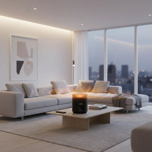 Termoventilador Cerámico PTC eléctrico de la serie ATICA en color NEGRO. Realizado en ABS y placas cerámicas. Con MOTOR DC, y equipado con 1800 vatios de potencia y TERMPERATURA REGULABLE, permitiendo ajustar entre dos potencias de calefacción, 900 vatios y 1800 vatios. Con tres funciones : ventilador, aire cálido y aire caliente, distribuyendo el aire caliente por toda la habitación gracias a su función ventilador y su diseño cilíndrico repartiendo el aire 360º, y con triple sistema de seguridad: protección contra sobrecalentamiento, Interruptor Antivuelco y rejilla de protección. Se presenta con un diseño muy moderno, con panel de control táctil y DISPLAY LED, que nos permite calentar cualquier estancia desde cualquier rincón, fácil de transportar, con bajo consumo y gran eficiencia gracias a sus placas cerámicas y a su MODO ECO, regulando la temperatura y potencias necesarias según la temperatura ambiente, también con apagado automático hasta pasadas 24 horas, creando y repartiendo calor de forma segura. Tiene unas dimensiones de 25,2x18,5x18,5 centímetros.