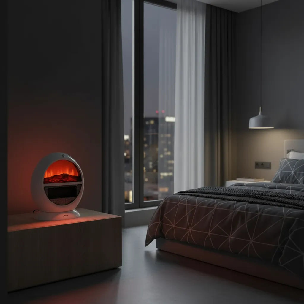 Termoventilador eléctrico de la serie MONGOL en color BLANCO. Realizado en policarbonato. Equipado con 2000 vatios de potencia y TERMOSTATO REGULABLE, permitiendo ajustar entre dos potencias de calefacción, 1000 vatios y 2000 vatios y con una visualización efecto fuego con llamas como si de una chimenea real se tratara, creando un ambiente cálido y acogedor al mismo tiempo. Distribuye el aire caliente por toda la habitación gracias a su función ventilador, y con triple sistema de seguridad: protección contra sobrecalentamiento, Interruptor Antivuelco y rejilla de protección. Es OSCILANTE con lo que llega de un barrido a todos los rincones de la estancia con efecto llama y al máximo de potencia, pudiéndose poner también fijo a temperatura cálida o caliente, o dejarlo simplemente encendido, sin transmitir calor, para relajarse con su efecto llama.. Presenta un diseño muy original y moderno pudiéndose colocar en cualquier estancia y tomar parte de la decoración a la misma vez que crea un ambiente cálido y relajante con su pantalla de llamas. Fácil de transportar por su peso y tamaño. Tiene unas dimensiones de 36x29,8x18,2 centímetros.